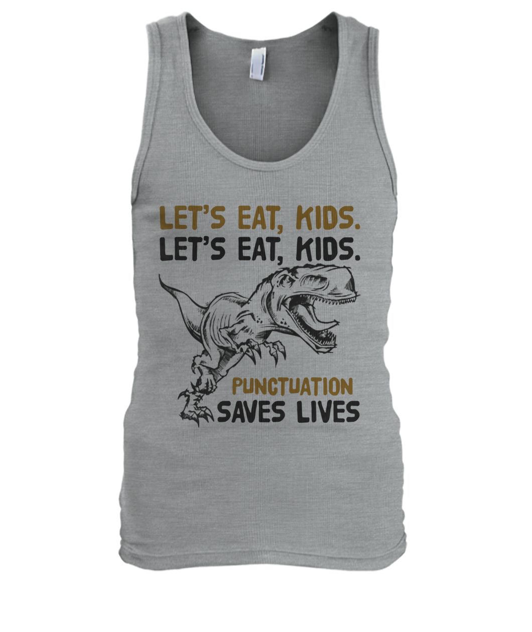 Or you can get it in here: https://www.moteefe.com/store/dinosaur-lets-eat-kids-lets-eat-kids-punctuation-saves-lives-shirt