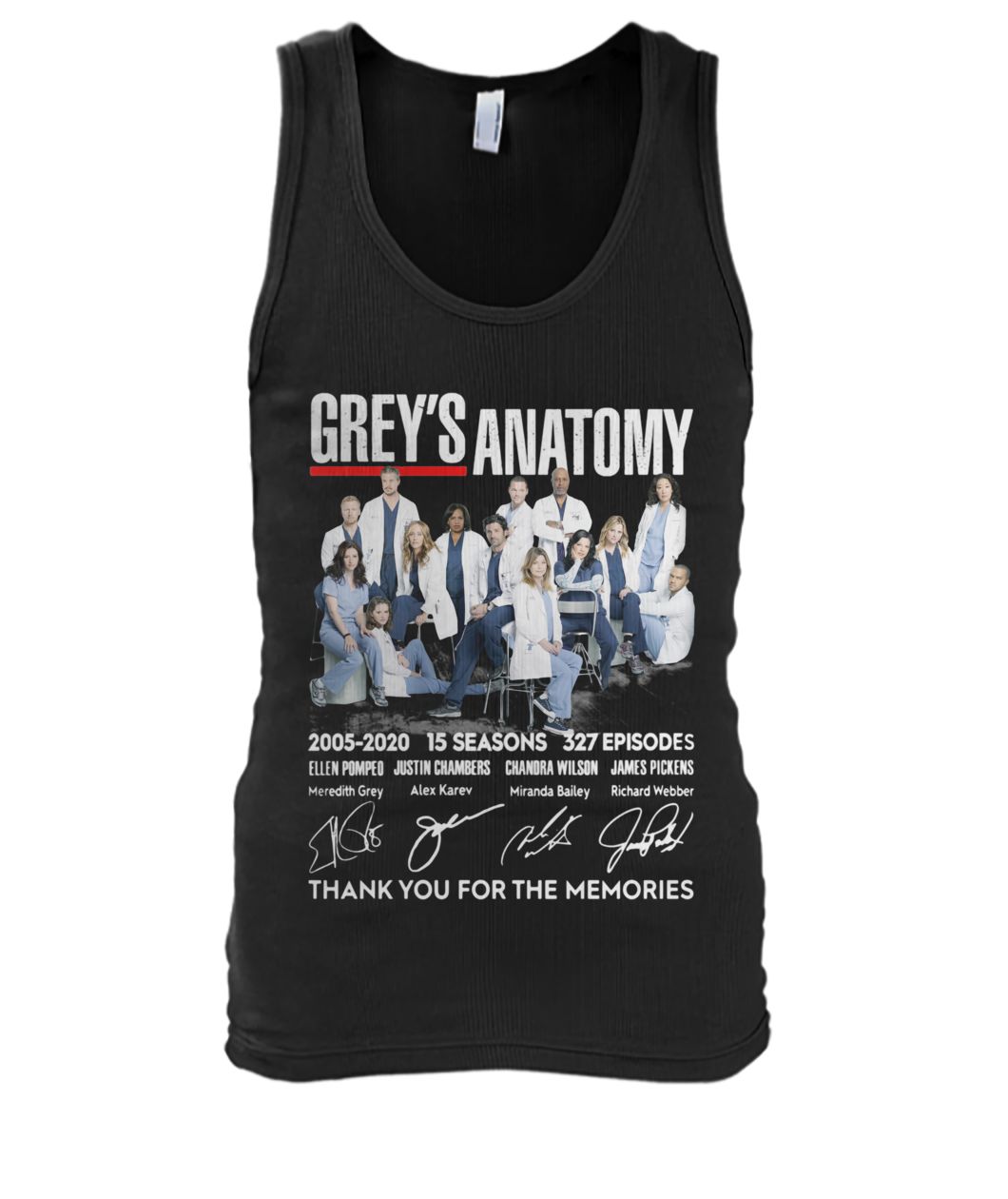Or you can get it in here: https://www.moteefe.com/store/greys-anatomy-2005-2020-15-seasons-327-episode-thank-you-for-the-memories-signatures-shirt