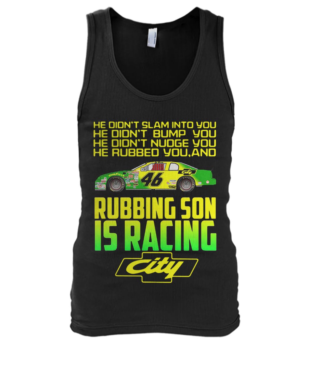 Where to purchase: Rubbing son is racing city he didn’t slam into you he didn’t bump you shirt